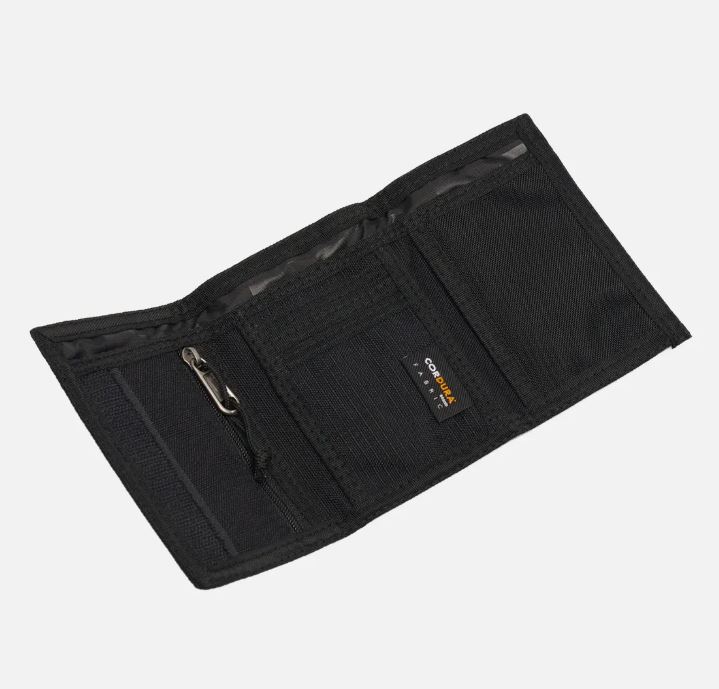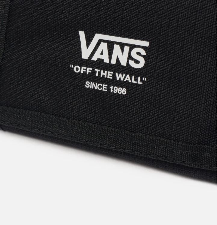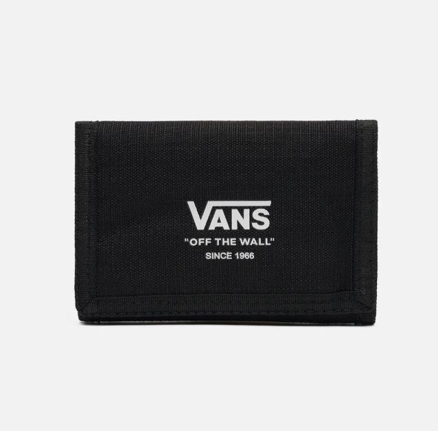 Кошелек представляет собой трехстворчатую модель с достаточным пространством для бумажных денег, несколькими слотами для карт и кармашком для монет. Имеет печатный логотип Vans на лицевой стороне. Изготовлен из долговечного полиэстера Cordura.