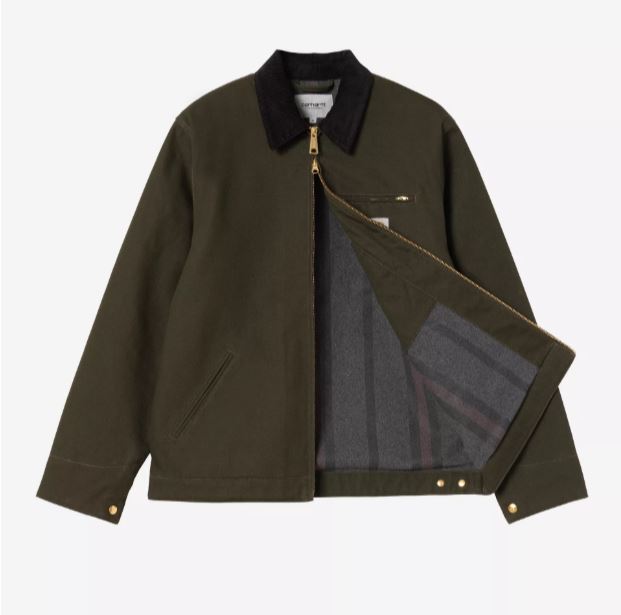 Классическая куртка Detroit от Carhartt WIP изготовлена из прочного канваса Dearborn весом 12 унций и имеет теплую подкладку из смесовой шерсти.