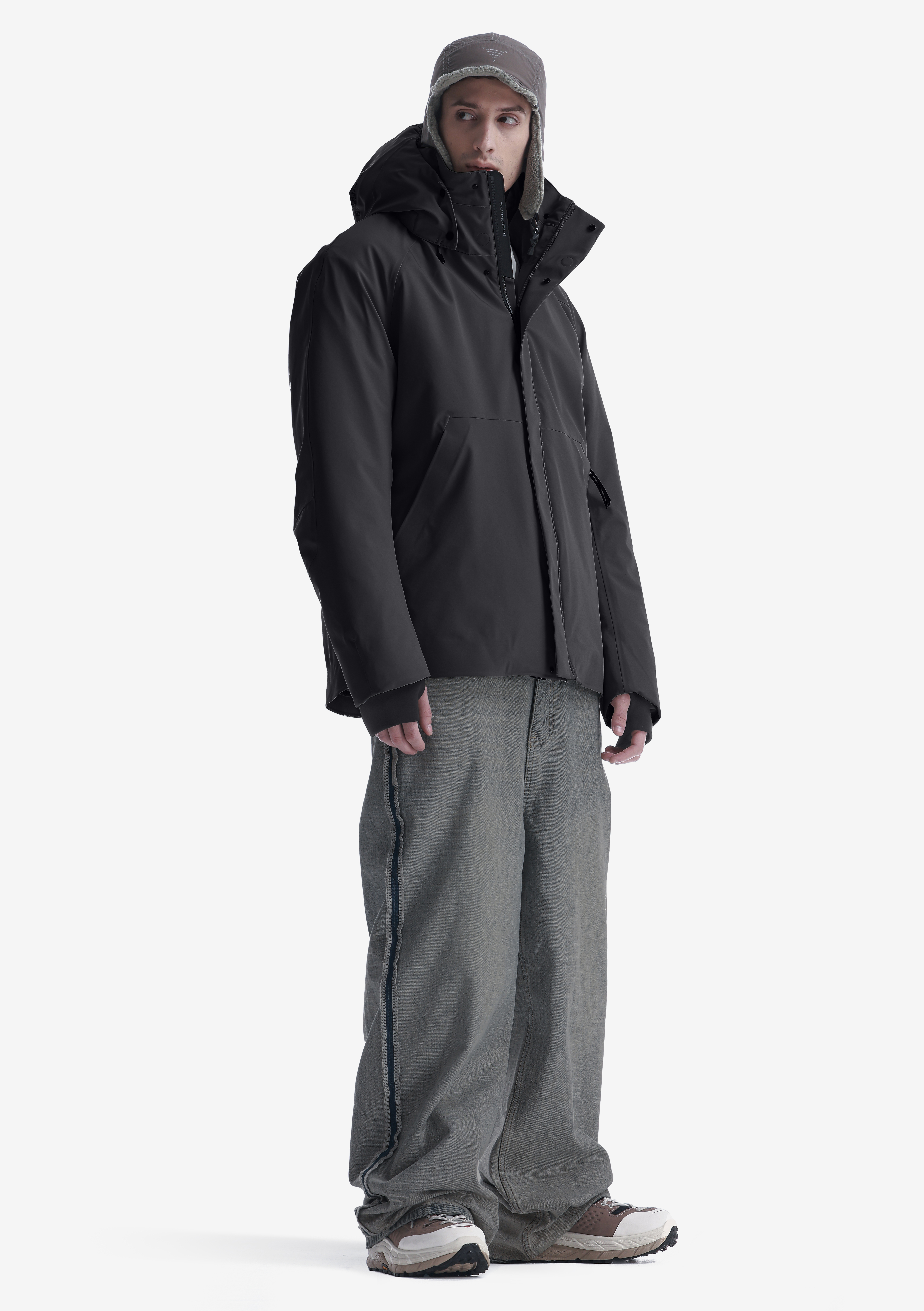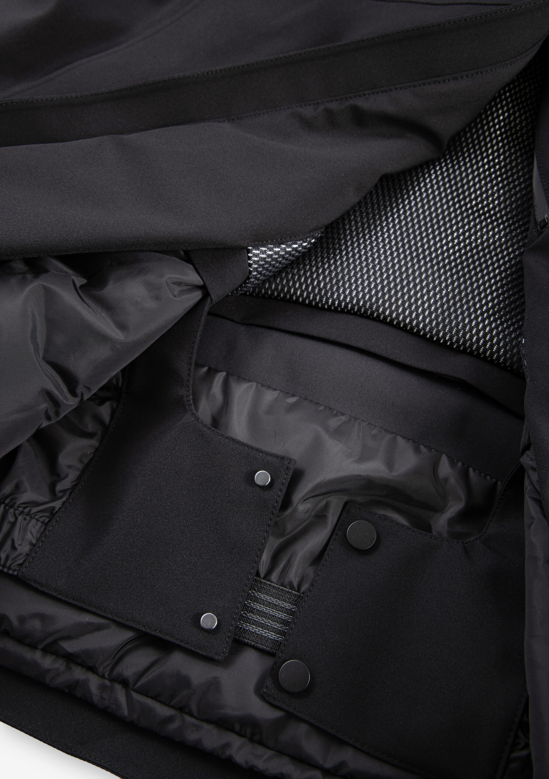 Плотная матовая ткань с высокими функциональными характеристиками. Ламинирована водостойкой паропроницаемой мембраной. Покрыта стойким водоотталкивающим составом из экологичных ингредиентов без содержания PFC — не загрязняет окружающую среду и безвреден для организма человека. 85 % нейлон, 15 % спандекс.