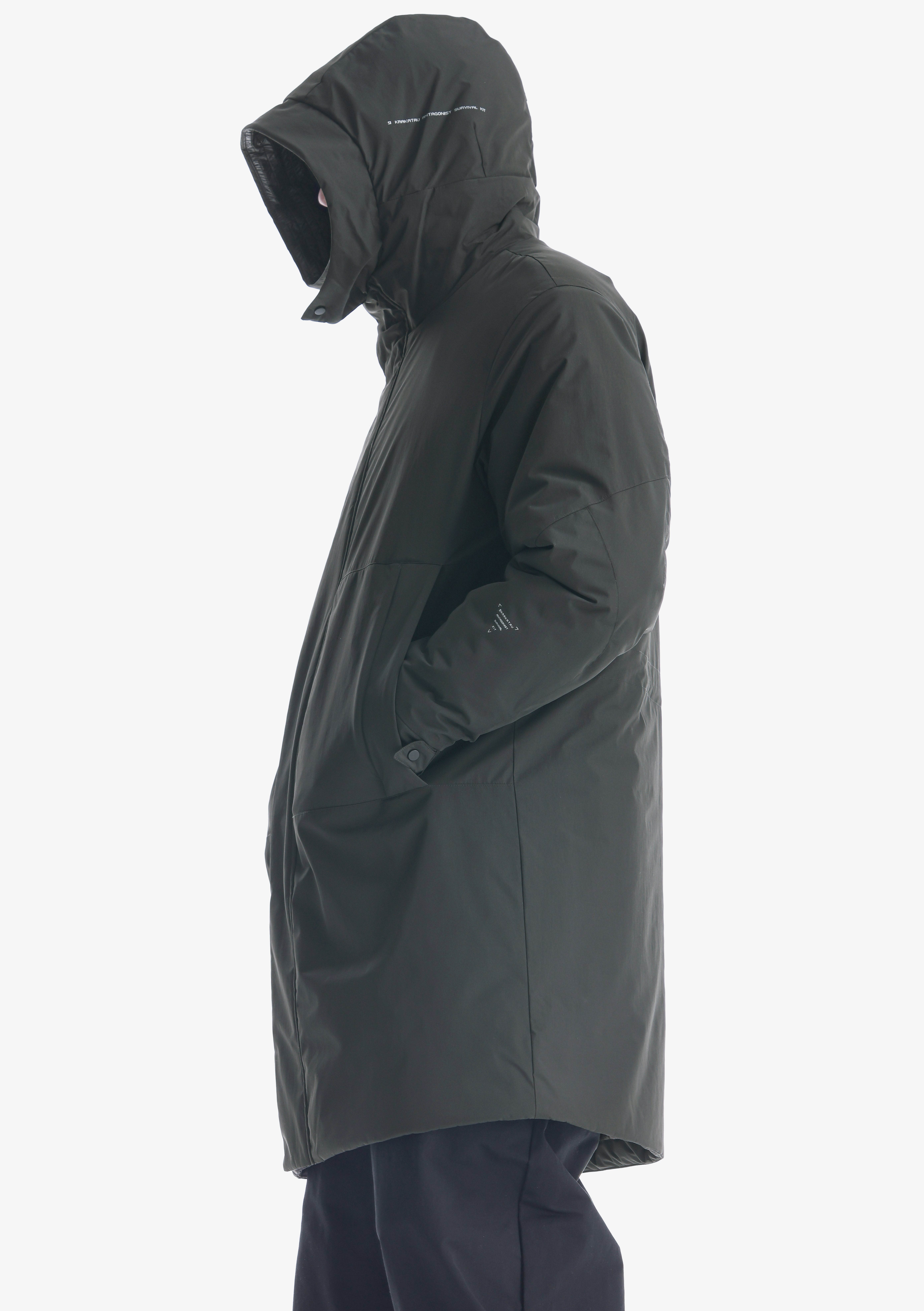 Прочная лёгкая нейлоновая ткань со слегка мятой текстурой, подчёркивающей визуальную глубину материала. Ламинирована водостойкой дышащей мембраной. С внешней стороны обработана антистатиком и покрыта стойким водоотталкивающим составом из экологичных ингредиентов без содержания PFC. Не загрязняет окружающую среду и безвредно для организма человека. Куртка из этой ткани быстро сохнет и неприхотлива в уходе. 100% нейлон.