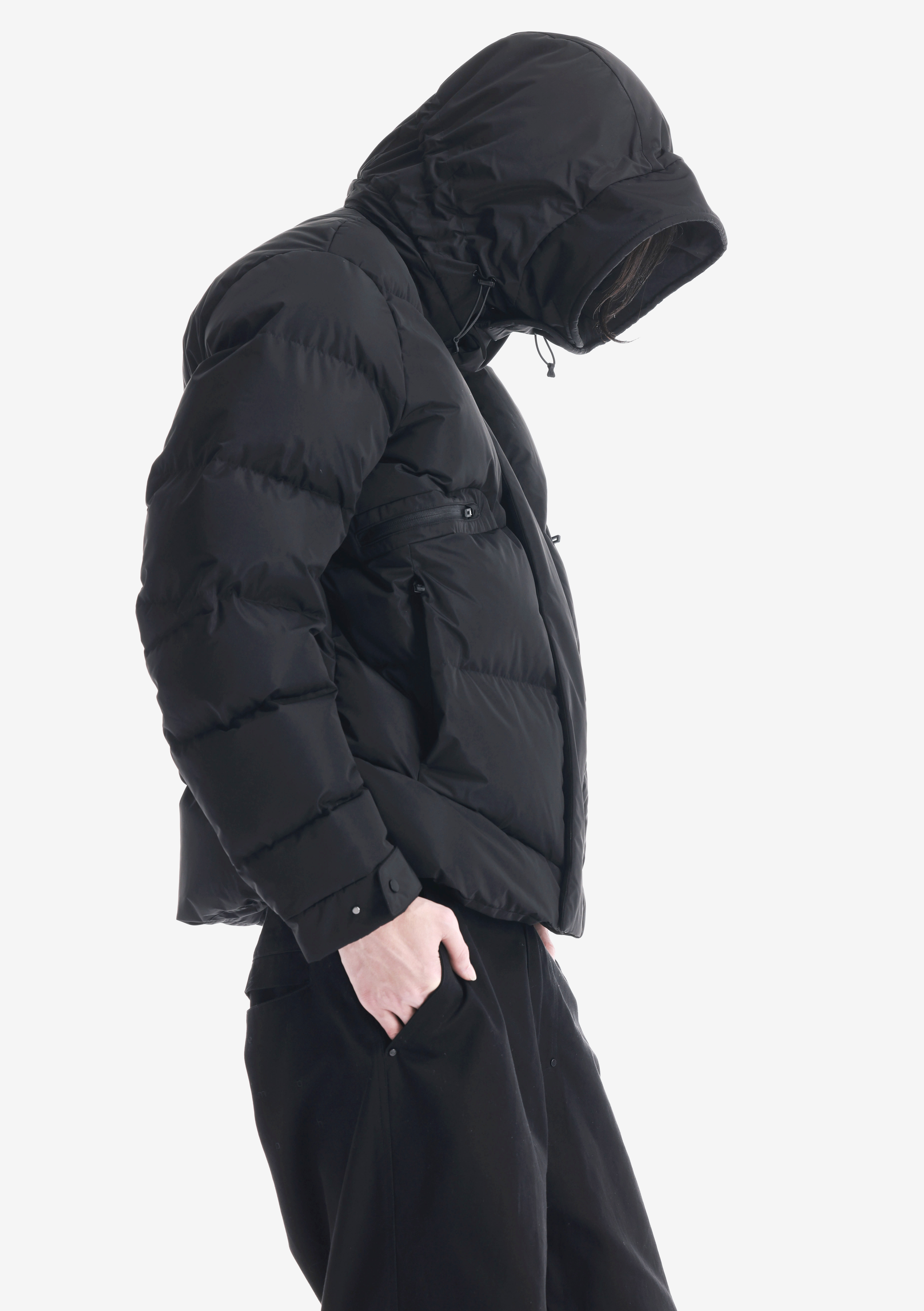Короткий водостойкий пуховик AITKEN из функциональной ткани. Утеплитель сочетает натуральный пух и синтетическое волокно — тёплый, лёгкий, устойчивый к влаге и сохраняет форму. Съёмный капюшон с армированным отворотом, вентиляционная планка на магнитах, внутренние стропы для ношения за плечами, продуманная система карманов — всё рассчитано на защиту, мобильность и комфорт.