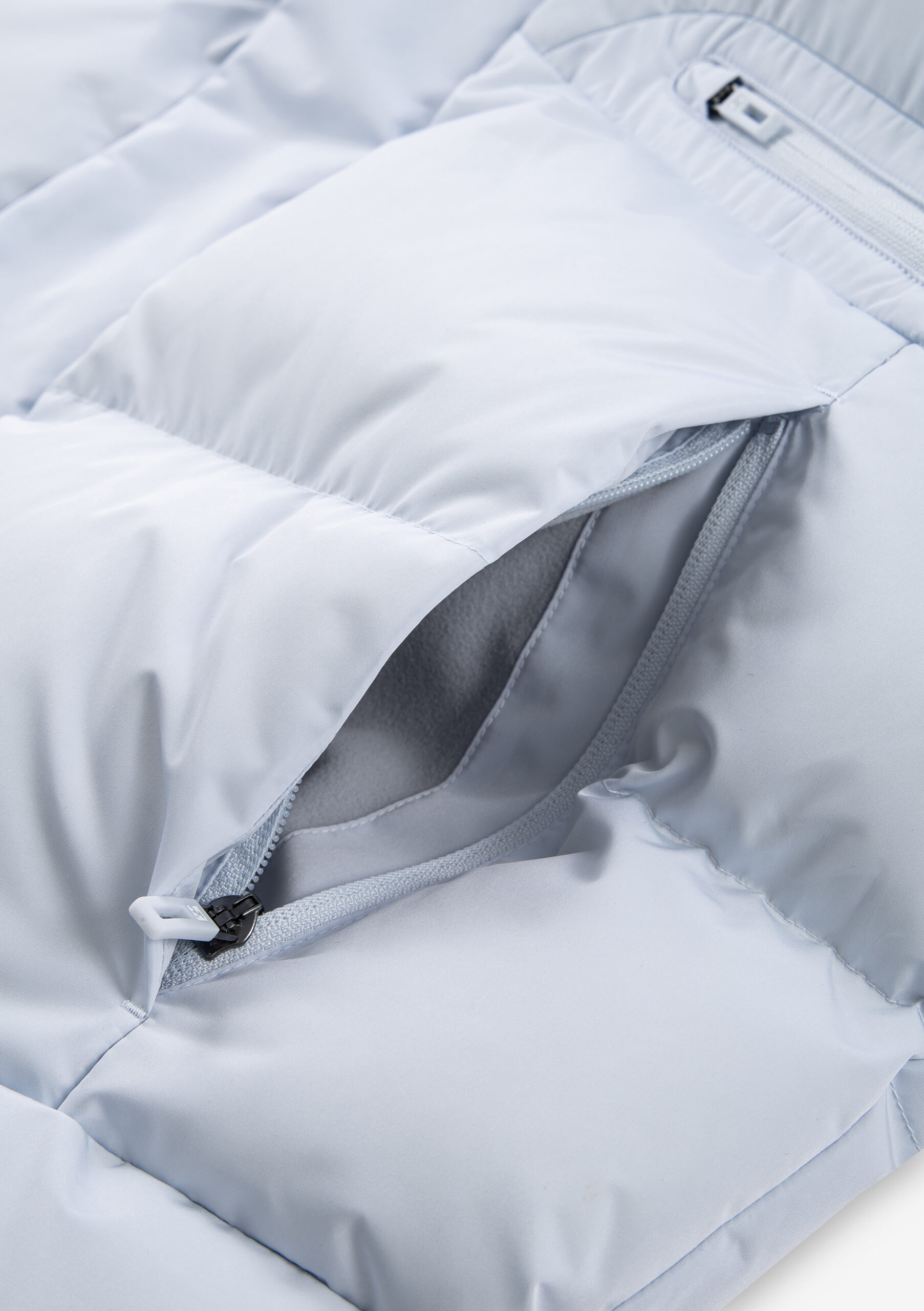 Подкладка из 100 % переработанного полиэстера с гладкой фактурой обеспечивает лёгкое скольжение по слоям одежды и комфорт при движении.